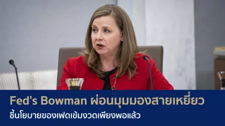 Fed’s Bowman ผ่อนมุมมองสายเหยี่ยวชี้นโยบายของเฟดเข้มงวดเพียงพอแล้ว