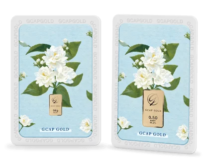 การ์ดทองคำแท่งลายดอกมะลิ สีขาวนวลบริสุทธิ์